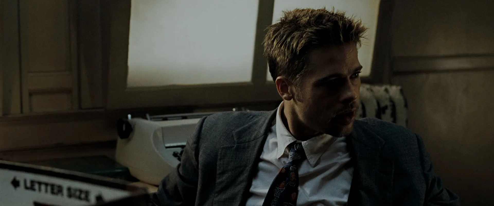 Cast: Brad Pitt as Detective David Mills, Morgan Freeman as Detective Lt. William Somerset, Gwyneth Paltrow as Tracy Mills, R. Lee Ermey as Police Captain, John C. McGinley as California, Julie Araskog as Mrs. Gould, Mark Boone Junior as Greasy F.B.I. Man, John Cassini as Officer Davis, Reg E. Cathey as Dr. Santiago, Peter Crombie as Dr. O'Neill, Richard Roundtree as Dist. Atty. Martin Talbot, Richard Schiff as Mark Swarr, Hawthorne James as George, Library Night Guard, Michael Massee as Man in Booth at Massage Parlor, Leland Orser as Crazed Man in Massage Parlor, Richard Portnow as Dr. Beardsley, Daniel Zacapa as Detective Taylor, Alfonso Freeman as Fingerprint Technician, Harris Savides as 911 Operator, Andrew Kevin Walker as Dead Man, Pamala Tyson as Thin Vagrant, Richmond Arquette as Delivery Man, Emily Wagner as Detective Sara, Shannon Wilcox as Woman Cop Behind Desk, George Christy as Workman at Door of Somerset's Office, Endre Hules as Cab Driver, William Davidson as First Guard at the Library, Bob Collins as Second Guard at the Library, Dominique Jennings as TV News Reporter, Allan Kolman as First Forensic Man in the Law Office, Gene Borkan as Eli Gould - Greed Victim, Mario Di Donato as Fingerprint Forensic Man in Law Office, Harrison White as Cop on SWAT Team, Bob Stephenson as Cop on SWAT Team, Michael Reid MacKay as Victor - Sloth Victim, Lennie Loftin as Policeman Who Takes Statement from Vagrant, Martin Serene as Wild Bill, David Correia as First Cop at Massage Parlor, Lexie Bigham as Sweating Cop at Massage Parlor, Evan Mirand as Paramedic at Massage Parlor, Paul Eckstein as Paramedic at Massage Parlor, Rachel Flanagan as Additional 911 Operator, Heidi Schanz as Pride Victim, Brian Evers as Duty Sergeant, James Deeth as Helicopter Pilot, Charles A. Tamburro as SWAT Helicopter Pilot, Charles S. Dutton as Cop (uncredited), Arthur Max as Man in Library (uncredited), Kevin Spacey as John Doe